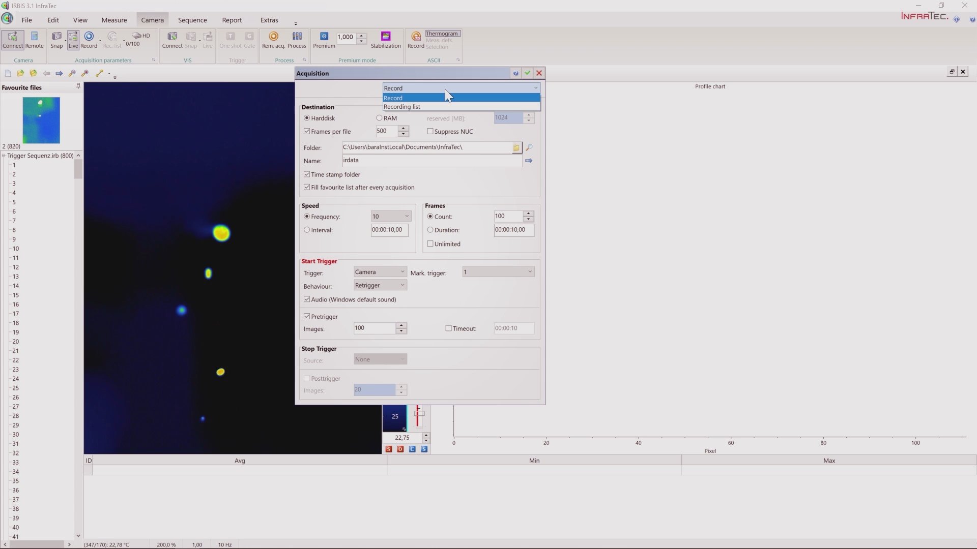 If you want to analyze the thermal behavior of objects and processes from a wide variety of perspectives, you can use the high-speed mode for maximum flexibility. This function allows the camera to be used in two different operating modes. The standard mode suits best for depicting the smallest geometrical details. This allows users to record images with the native number of pixel of the camera detector. Switching to high-speed mode opens up the option of more than triple the frame rate, while the field of view (FOV) remains identical. This enables for most accurate time monitoring of fast processes. At the same time, the thermal resolution increases by a factor of 2 in high-speed mode, which additionally improves the analysis of temperature differences.