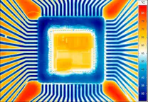 However, thermographic systems with a high spatial resolution are able to make such small structures clearly visible and, in addition, to determine their exact temperature distribution along with their chronological sequence. By means of specific close-ups and powerful infrared microscopic lenses, users can thermographically measure hotspots of just a few micrometres in size on the surface of components such as semiconductor components. If SIL lenses (Solid Immersion Lenses) are additionally used, even smaller structure sizes can be detected. In combination with appropriate active thermography methods (lock-in thermography), temperature differences in the µK range are clearly visible for failure localisation.