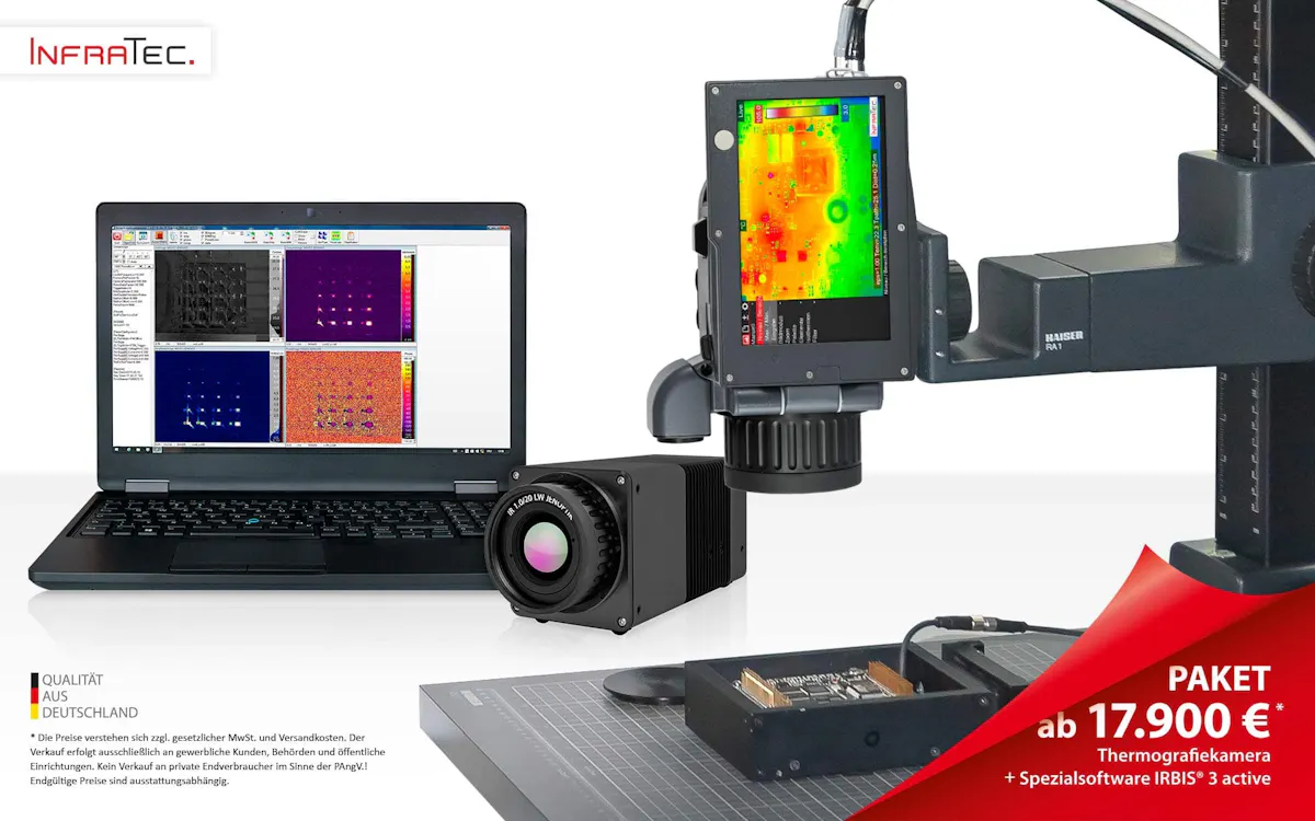 Today many manufacturers of electronic components and assemblies use thermographic cameras during product development. InfraTec is opening up a completely new range of opportunities to such users. A package for Lock-in Thermography gets you off to a successful start in such challenging measurement tasks at an exceptional attractive price. This includes the VarioCAM® HDx thermographic camera – as a stationary or handheld model – together with the IRBIS® 3 active thermography software, the appropriate trigger unit and corresponding connection cables.